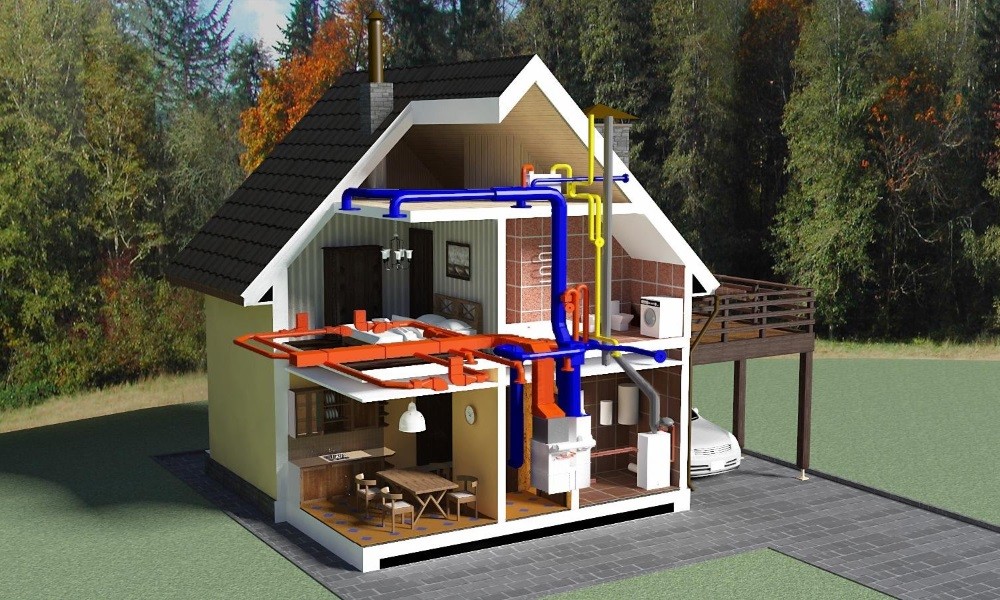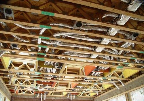 И во всех домах США собранных по каркасной технологии установлены системы воздушного обогрева и кондиционирования воздуха, в каркасном строительстве прокладка воздуховодов осуществляется на этапе формирования каркаса.
